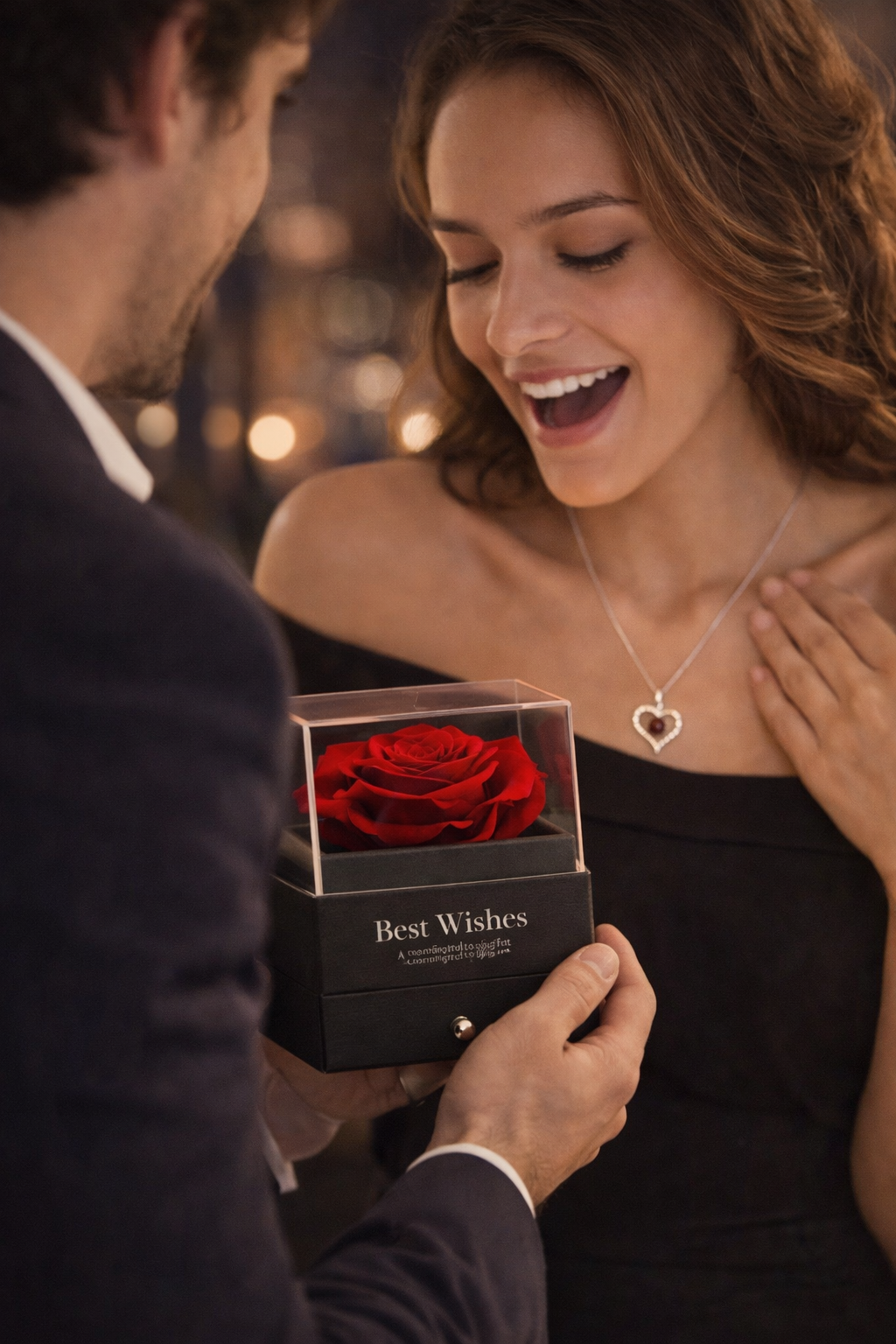 A timeless rose, a hidden heart necklace, and a surprise she’ll never forget.